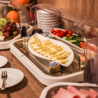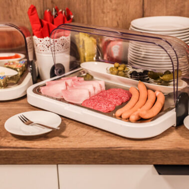 Genießen Sie ein abwechslungsreiches Frühstück mit frischen, regionalen Produkten. Ob herzhaft oder süß – von knusprigen Brötchen bis zu frischem Obst ist für jeden Geschmack etwas dabei.